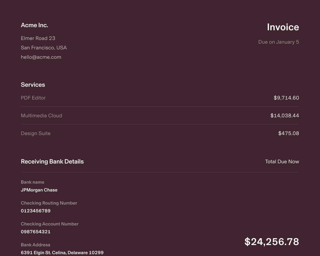 - Multiple payment options: support for ACH, wire transfers, virtual cards, and paper checks