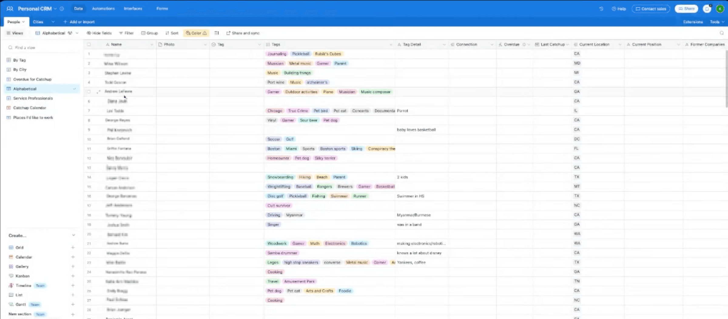 The spreadsheet made it tough to distinguish between current and former employees. And listing every hobby as a “tag” made the database look scrambled. Also, since the information was “all over the place,” Kafi and her team couldn’t always track the more granular details behind employees’ lives that paint a fuller picture of who they are.