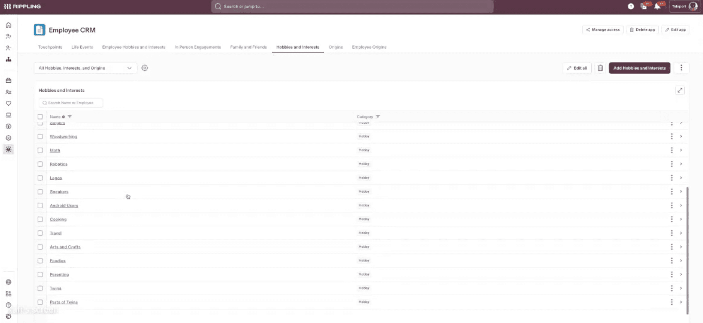 Teleport took information about its employees’ hobbies out of spreadsheets and into a Rippling Custom app to boost engagement and give its HR initiatives a more personalized touch.