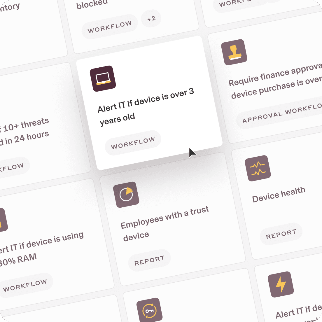 Automate everything from simple onboarding tasks to advanced security alerts with custom workflows, improving efficiency across every aspect of IT.