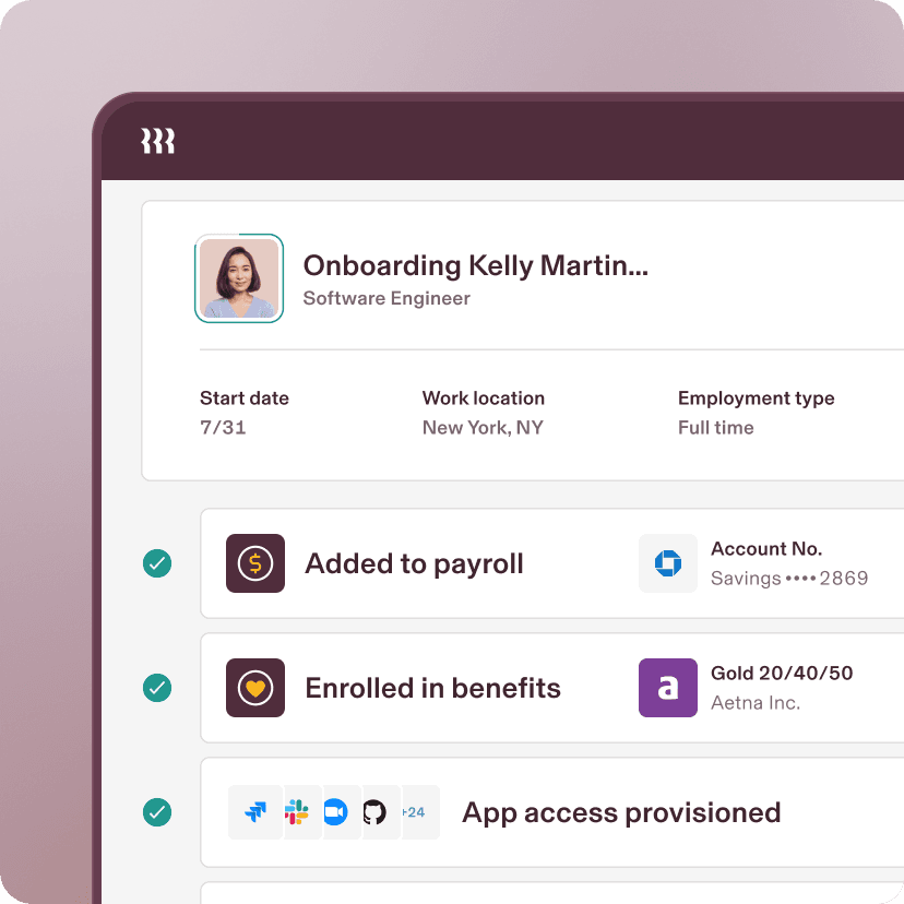 Rippling automatically handles more administrative tasks than any other HR solution for startups—a complete, turnkey back office in a box.